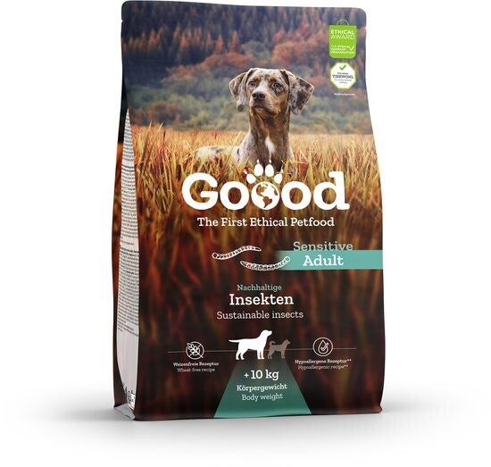Goood Duurzame Insecten met Haver, Wortel & Pastinaak is perfect als je op zoek bent naar een duurzame en gezonde voeding voor jouw huisdier. Onze voeding bevat hoogwaardige eiwitten afkomstig van insecten, die minder water, land en voer nodig hebben om te produceren dan traditionele eiwitbronnen als vlees of vis.