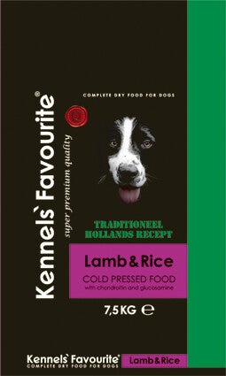 Kennels` . Favourite ® Lamb&Rice is een uniek super premium product op de Europese markt voor dierenvoeding. Met deze droogvoeding hebben we bij Kennels` . Favourite ® geprobeerd zo dicht mogelijk bij de natuur te komen. Dit is een koudgeperste, vaste droogvoeding met een hoge voedingswaarde. Het is een voeding voor alle leeftijden en alle rassen, en bovendien de ideale voeding voor zeer grote rassen, werkhonden en wat oudere honden. Het vermindert de kans op darmtorsie en is licht verteerbaar. Dat komt door de unieke formule: de korrels breken van binnenuit, waardoor maximale voedingsstoffen de maag en darmen bereiken. Kennels' Favourite ® Lamb&Rice heeft ook als voordeel dat het de ontlasting reguleert: als u te veel voert, wordt de anaalklier op een natuurlijke manier samengedrukt, zonder diarree te veroorzaken. U zult ook merken dat als u dit voer een tijdje geeft, het pigment terugkomt in de neus, de vachtkleur voller wordt en teven weer loops worden.