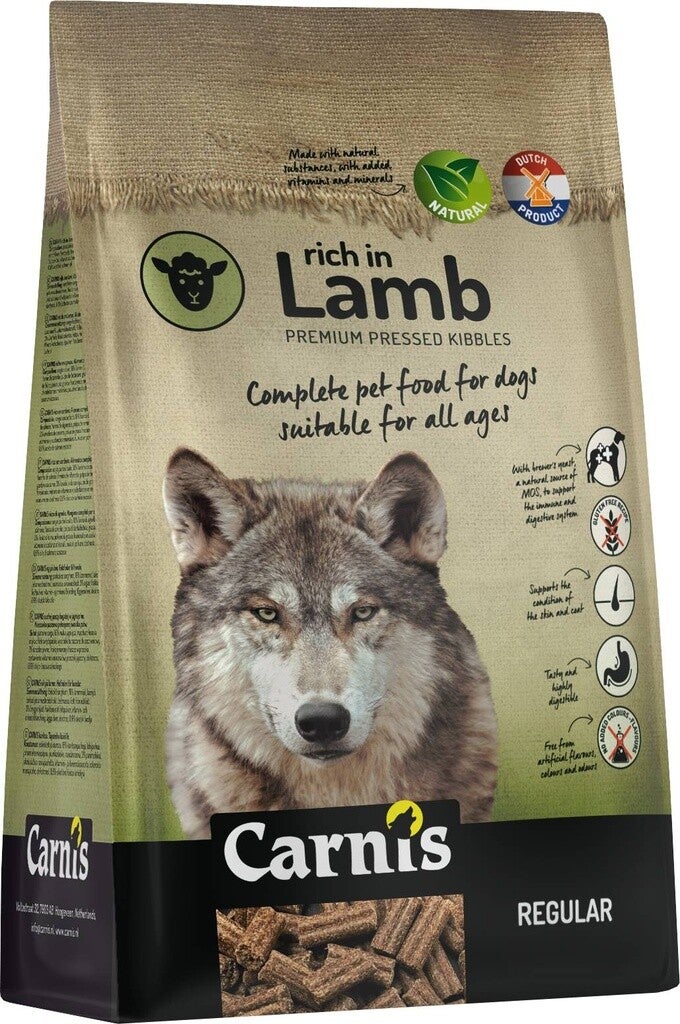 Carnis smakelijke en hoogwaardige hondenvoeding op basis van sorghum en die rijk is aan lam, is een complete voeding voor honden van alle leeftijden en rassen. Elk geperst brokje zit bomvol natuurlijke ingrediënten om jouw hond gezond te houden en met smaak te laten eten. Daarnaast bevat de voeding geen kunstmatige geur-, kleur- en smaakstoffen en is deze ontwikkeld op basis van een tarweglutenvrije receptuur.
