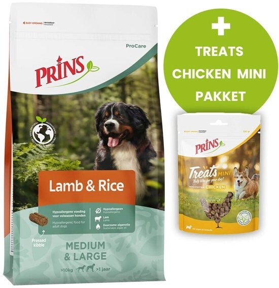 Prins ProCare Lamb & Rice 20kg met GRATIS treats chicken mini