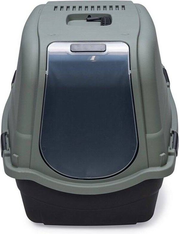 De kattenbak is voorzien van een grote deur aan de voorkant en heeft geen filter. Om de kattenbak schoon te maken haal je de deksel via de sluitingen eenvoudig los. Het handvat zorgt ervoor dat je de deksel gemakkelijk op kunt tillen.