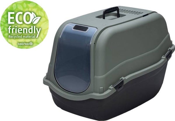 Geen zin in poespas? Ga dan voor de duurzame Beeztees Romeo Maxi Kattenbak. Deze gesloten en grote kattenbak is ecologisch verantwoord omdat deze is gemaakt van 100% gerecycled materiaal.