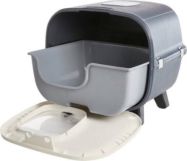 - Kattenbak binnen met hoge zijkanten rondom en verlaagde instap.