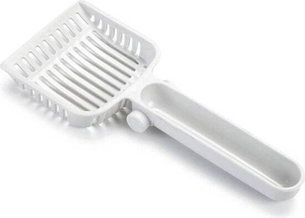 De lade aan de voorkant heeft een plateau met gaatjes, waardoor de kat een groot deel van het kattenbakgrit achterlaat in de bak alvorens de kattenbak te verlaten. Door de uitschuifbare lade kan je in een oogopslag zien of de kattenbak aan verschoning toe is. Aan de bovenkant van de kattenbak bevindt zich een klepje waar de kattenbakschep opgeborgen kan worden.