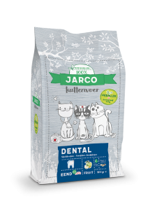 Jarco Zorg kattenvoer Dental is een tarweglutenvrij premium product met verse eend en bereid met zorg. De speciale voeding ter vermindering van tandplaque en tandsteen, waardoor het ontstaan van paradontale aandoeningen wordt tegen gegaan.