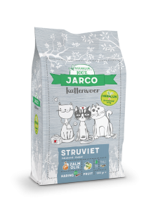 Jarco Zorg kattenvoer Struviet is een tarweglutenvrij premium product met verse haring en bereid met zorg. Het is een volledige en uitgebalanceerde dieetvoeding bij struvietvorming (de vorming van kristallen en/of stenen in de urineblaas, hoofdzakelijk opgebouwd uit magnesium, ammonium en fosfaat).