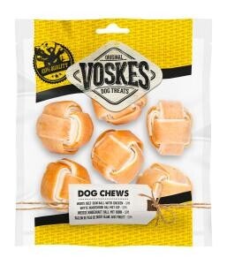 Bal van blanke runderhuid en kip. Verras je hond met deze bal waarop hij uren kan kauwen.