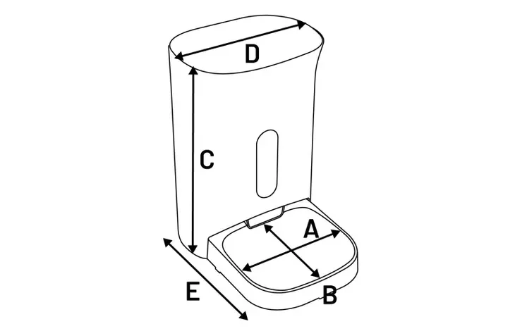 - Geschikt voor 4,5 l droogvoer (5-15 mm), tot max. 4 maaltijden per dag en max. 100 g per maaltijd (max. 10 porties per maaltijd, 1 portie is ca. 10 g)