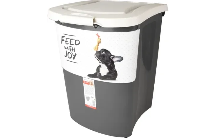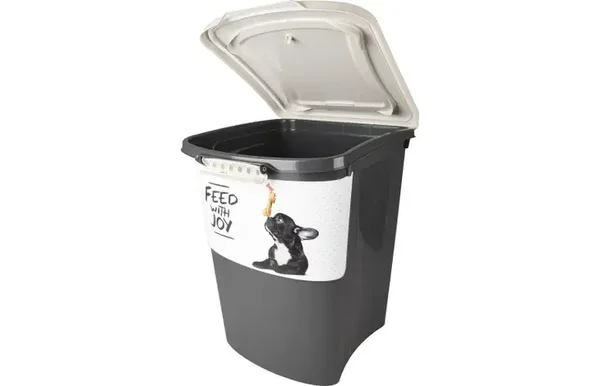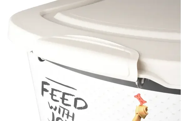 Bewaar het voer van je harige vriend in deze handige ton! Met een slim deksel, wielen en inkepingen voor extra gemak. Inclusief handige schep.