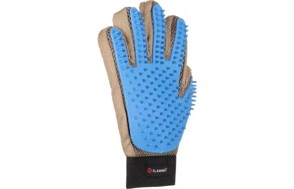 Deze handschoen is perfect voor het verwijderen van losse haren bij je huisdier. Het verzorgt en masseert de huid en verbetert de bloedcirculatie. Met klittenband voor een goede pasvorm en makkelijk met de hand te wassen.
