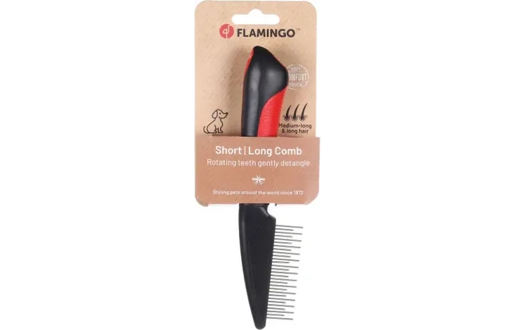 Bye bye klitten! Met deze kam met roterende tanden ontwar je moeiteloos de vacht van je harige vriendje. Geen pijnlijk getrek meer! Geschikt voor middellange en lange vachten. Het rubberen handvat zorgt voor een stevige grip.